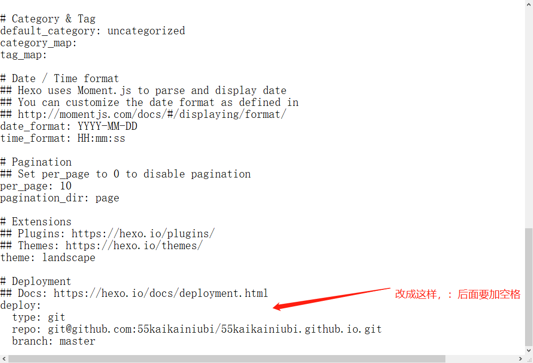 他这里用的是.deploy_git文件,我的电脑上没有,所以我更改的是.config.yml文件